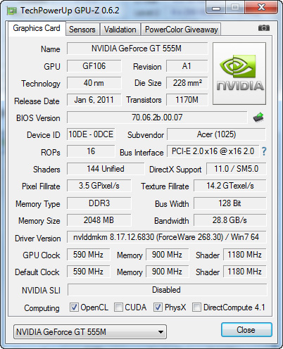 : NVIDIA GeForce GT 555M 2 Гб DDR3