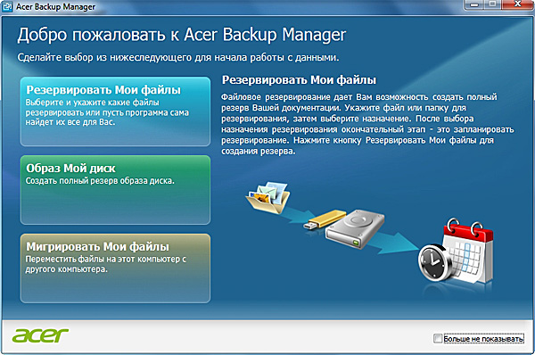 Acer Backup Manager - архивирование файлов, всего диска, перенос данных на другой компьютер.