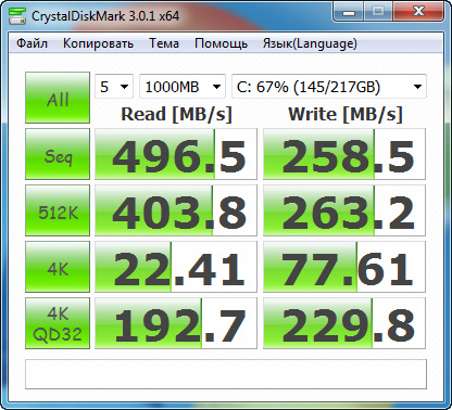 Кстати, скорость обмена с жестким диском была 5,6. Паршивенько, конечно, на нем система ворочалась не в пример медленнее.