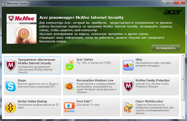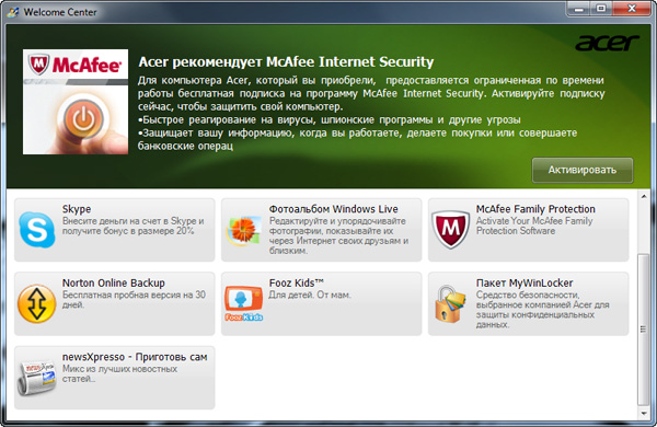 Acer обычно ставит немало предустановленных программ на свои ноутбуки. Давайте посмотрим, что там предлагается.