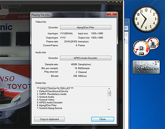 Сначала погонял видео высокого разрешения. Как и ожидалось, все просто летает, запас по мощности - огромный. На ролике FullHD кодека MPEG-2 в AVI загрузка процессора - 6-7 процентов.
