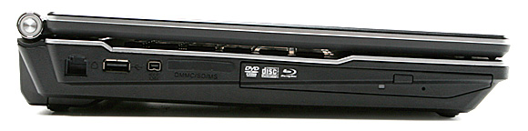 Левый торец: модем, USB, Fireware, кардридер, DVD-привод. (Может комплектоваться приводом Blu-ray, в том числе пишущим.)