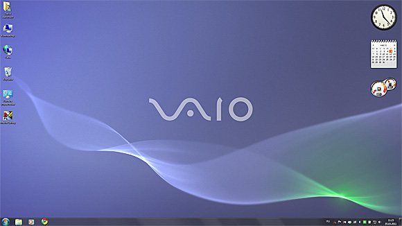 Десктоп загруженного дескноута выглядит вполне традиционным образом - Windows 7 во всей ее красе со сдержанной фоновой картинкой от Vaio.