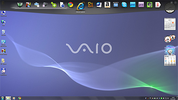 Всякие триальные антивирус McAfee и Norton Backup я не считаю - так же как и триальные Adobe Photoshop Elements и Adobe Premiere Elements. Из интересного - несколько приложений от Sony. Например, программулька под названием VAIO Gate. Это почти в точности скопированный dock от MacOS, только перенесенный наверх и закрывающийся-открывающийся, как панель задач Windows.