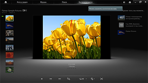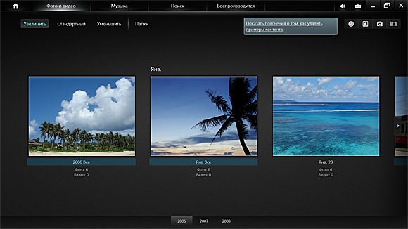 Выглядит это все красиво, пользоваться для просмотра фото и музыки - удобно. С видео сложнее - понимает только пару форматов и выводит их очень криво.