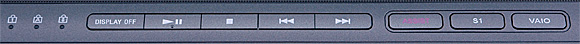 Справа над клавиатурой - кнопки управления медиаплеером и специальные кнопки: вызов утилиты VAIO Care, кнопка быстрого вызова (перенастраивается) и кнопка вызова Media Gallery. Слева от них - три индикатора: NumLock, CapsLock, ScrollLock. Среди кнопок управления медиаплеером есть очень полезная клавиша выключения дисплея.