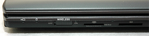 На фронтальном торце слева - индикаторы питания и жесткого диска, кнопка включения-выключения беспроводных сетей, кардридер. Кстати, вообще удобнее, когда Blutooth и Wi-Fi включаются-выключаются по отдельности. Впрочем, их, конечно, спокойно можно включать и выключать программно - тут есть специальная утилита.