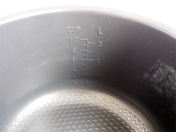 На чаше нанесены мерные деления. Некоторые глубоко наивные люди думают, что "L" - это литры. Так вот, это совершенно не так! Поскольку мультиварка - это, как мы выяснили, обыкновенная рисоварка, но с вертикальным взлетом в области каш и томленых овощей с мясом, то и деления здесь наносятся так, как это всегда делается в рисоварках. "CUP" - уровень воды, соответствующий количеству мерных стаканов с рисом. "L" - это итоговый объем готового риса из соответствующего количества кружек (мерных стаканчиков). Таким образом, если в мультиварку засыпать 9 мерных стаканчиков риса и залить водой по риске CUP 9, то из этого получится чуть меньше 3000 мл готового риса. Поняли что-нибудь? Правильно, не поняли. А потому что вы - не настоящий самурай. Короче говоря, измеряйте продукты в штуках, измеряйте сыпучие крупы в мерных стаканчиках, измеряйте воду в литрах чайника - и будет вам счастье.