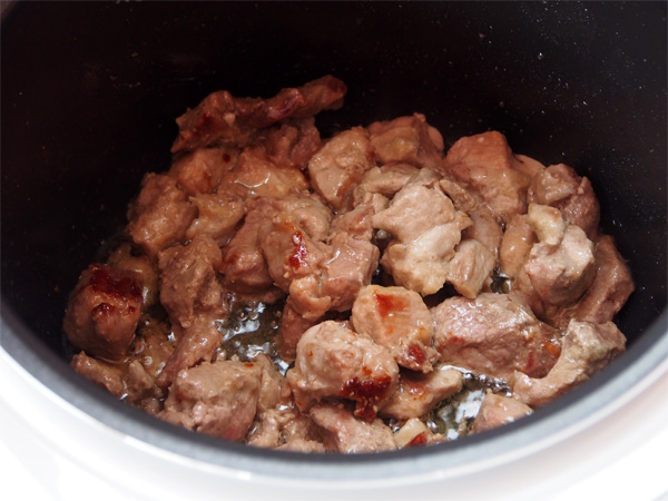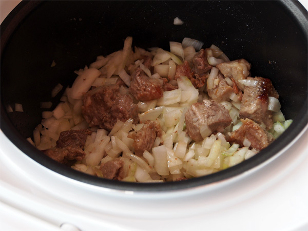 Именно по этой причине в мультиварках нельзя задать программу из серии "сначала обжарь, а потом туши". Вам это придется делать в режиме ручного управления, как это сейчас модно в России. То есть сначала закладываете мясо, включаете режим "Жарка", обжариваете, затем обжариваете мясо с луком и только после этого добавляете воды и включаете режим "Тушение".