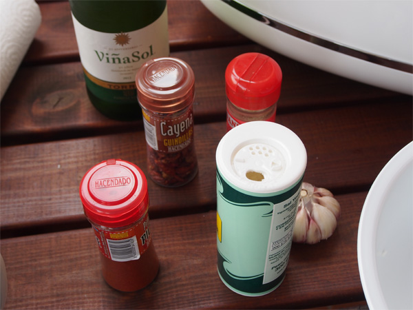 Засыпаем специи: соль, черный перец, пикантный красный перец, кайенский перец, зиру. Ну и также другие специи по вашему вкусу.