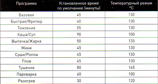 Программ готовки здесь 12 штук - они все хорошо видны на фотографии.