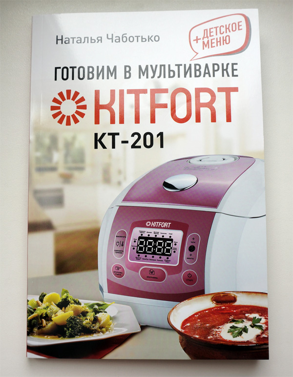 Комплект поставки: мультиварка, справочник по эксплуатации, книга "Готовим в мультиварке Kitfort KT-201" с рецептами (кстати, очень полезная, я о ней еще напишу).