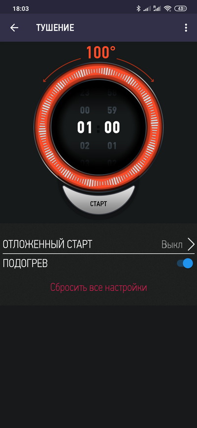 Ну и в процессе приготовления, если вы находитесь недалеко от устройства (смартфон подключается по Bluetooth), в приложении вы можете посмотреть, сколько времени осталось.