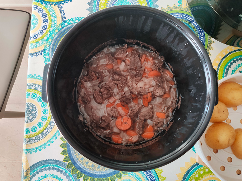 Говядина получилась очень нежная и вкусная, картошка полностью сварилась на пару плюс пропиталась аппетитными запахами.