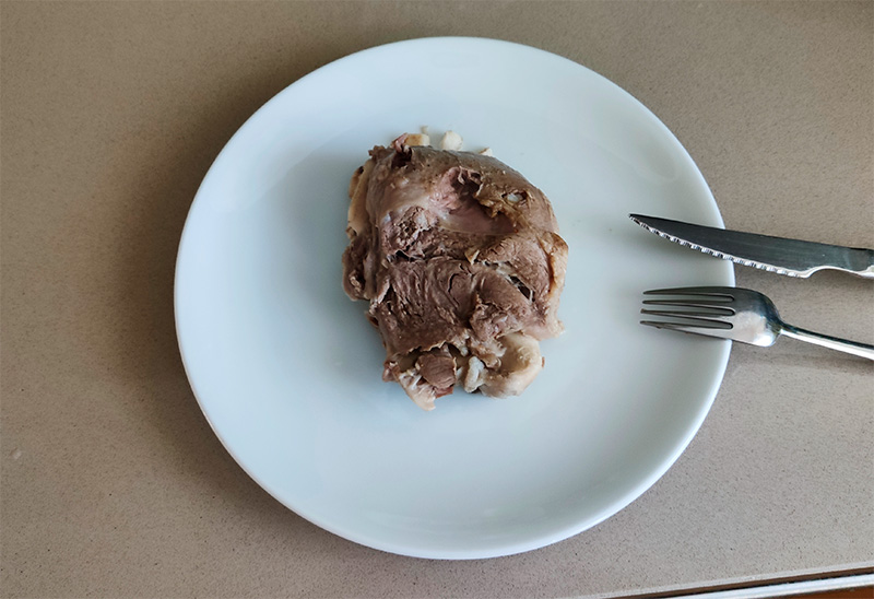 "Мясо получилось очень мягкое и нежное, но явно переготовленное, по вкусу было похоже на свиную тушенку. Надо было все-таки скорректировать время приготовления - щечки ведь значительно меньше рульки. Я думаю, что часа бы хватило."