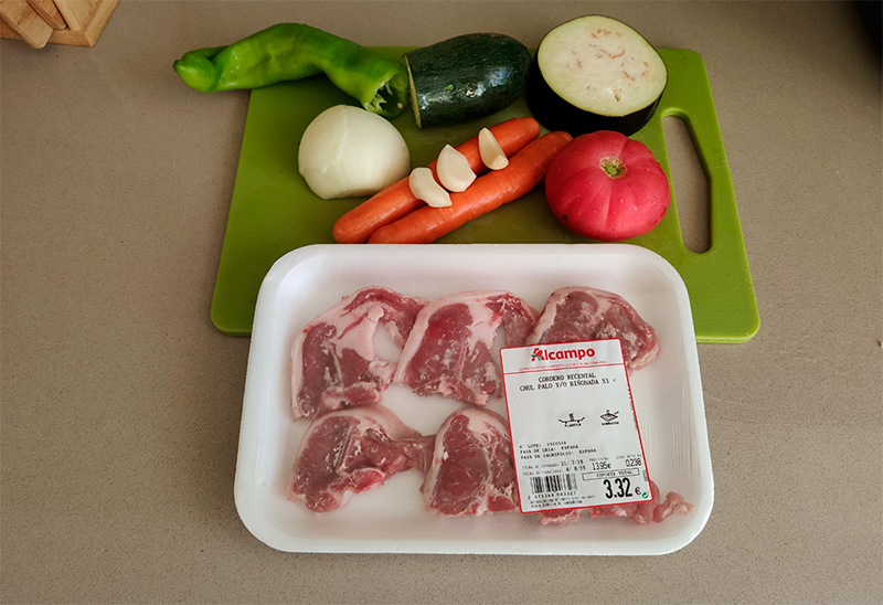 Баклажан, кабачок, перец, помидор, морковка, лук и чеснок. Ну, и баранина.