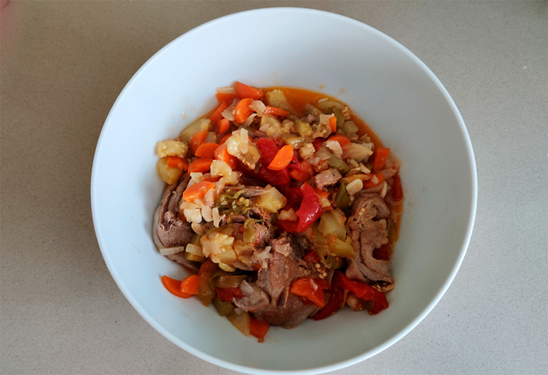 Готово. И мясо, и овощи отлично приготовились - блюдо получилось очень вкусное.