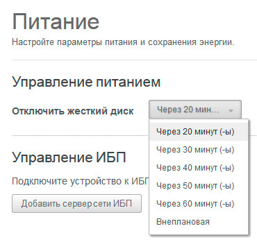 Настройка управления питанием.