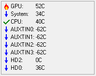 Для сравнения, температура на моей персоналке: процессор 40 градусов, материнская плата 34 градуса, жесткий диск 36 градусов.