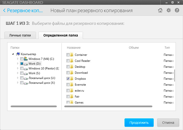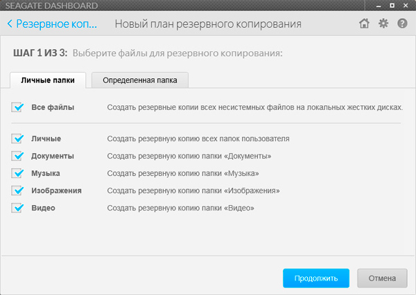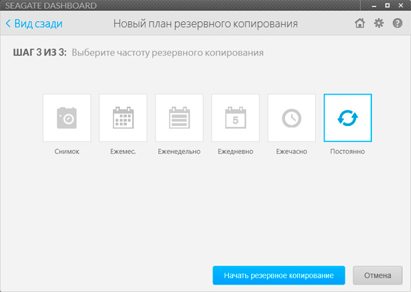 В разделе "Диспетчер резервного копирования" предлагается скачать программу Seagate Dashboard - она может по расписанию сохранять определенные данные на этом накопителе.