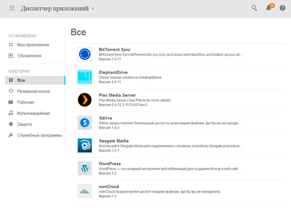 Накопитель поддерживает различные расширения: торренты, внешний доступ, медиасерверы, Wordpress и так далее.
