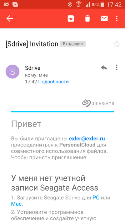 Я добавил нового пользователя и отправил ему приглашение для удаленного доступа. Вот что он получил. (Доступ у него будет только к папке Public.)