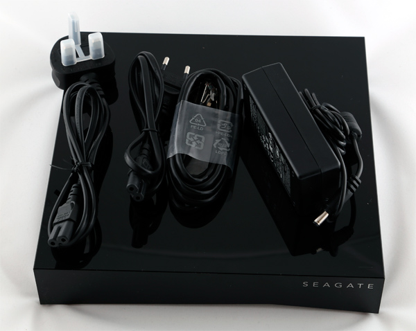 Внутри: накопитель, адаптер питания, европейский кабель к нему, британский кабель, кабель Ethernet.