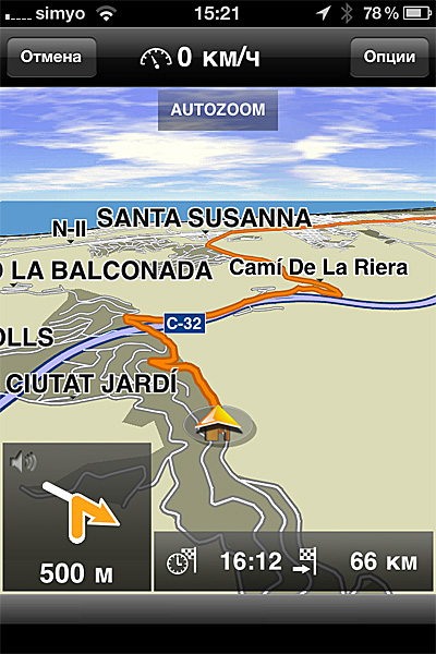 Какие-то навигационные программы стали появляться в iPhone начиная с версии 3G, в которой была сделана поддержка GPS и A-GPS. Я как раз с 3G катался по Италии, используя программу Sygic. В общем, работало это все терпимо, где-то на троечку, но там явно не хватало мощностей самого iPhone - на сложных развязках навигатор засыпал секунд на десять, и я имел все шансы промахнуться мимо требуемого направления. На версии 3GS навигация работала слегка пошустрее, но тоже зависала в сложных случаях. Ну и, конечно, на 3G-версиях явно не хватало разрешения экрана: все-таки для карт 320х480 точек - это категорически недостаточно.