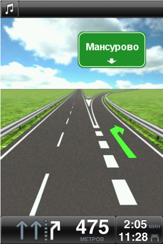 И особенно порадовало то, что, в отличие от CityGuide и Sygic Russia, у Navigon интерфейс был разработан четко в айфонно-эпловых традициях и требованиях. Заметный минус у программы был только один: если Москву, Питер и еще несколько крупных городов он знал довольно хорошо, то более мелкие города уже были в пролете - некоторые из них навигатор вообще не знал и показывал точкой на карте. Так что для крупняков программа подходила, а вот для езды по России - не особенно.