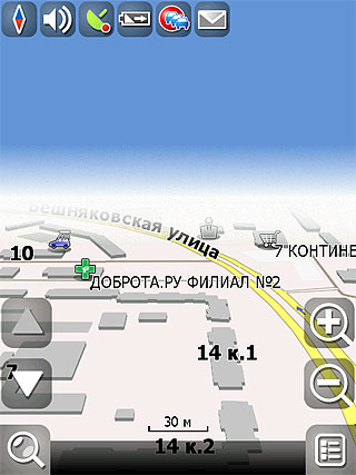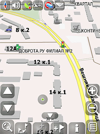 Автомасштабирование в Navitel Navigator сделано просто замечательно. Когда машина движется медленно или вообще стоит - выбирается крупный масштаб, при котором хорошо видны дома и точки интересов.
