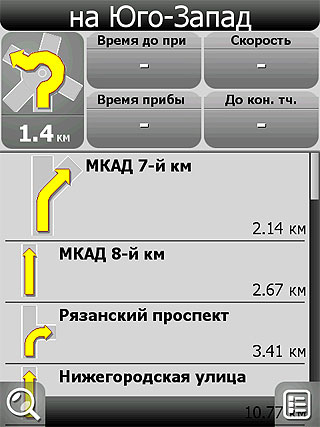 По рассчитанному маршруту и просто в процессе навигации можно с помощью курсоров влево-вправо джойстика вызывать следующие информационные окна.