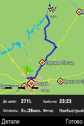 Я как следует протестировал механизм прокладки маршрута. Надо сказать, мне очень понравилось, как он работает. Даже во всяких хитрых случаях он прокладку делал так же, как и я сам, - это порадовало. Плюс с пересчетом маршрута в случае, когда я решал поехать другим путем, все пересчитывалось и перепрокладывалось именно так, как надо.