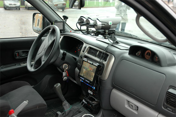 Это: четыре видеокамеры - три спереди и одна сзади; компьютер со специальным программным обеспечением, который цифрует все, что снимают камеры, записывает данные на два носителя (жесткий диск и флешка для дублирования) и выводит на экран различные данные; несколько GPS-приемников; GPS-навигатор; внешние накопители и ноутбук второго сотрудника, где отмечаются точки интереса (POI) и другие данные.