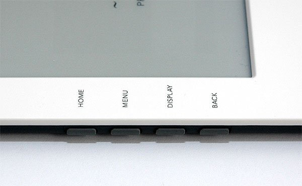 Управление ридером производится с помощью оригинального четырехпозиционного джойстика с кнопкой "ОК" и четырех кнопок, расположенных на левом торце: Home, Menu, Display, Back.