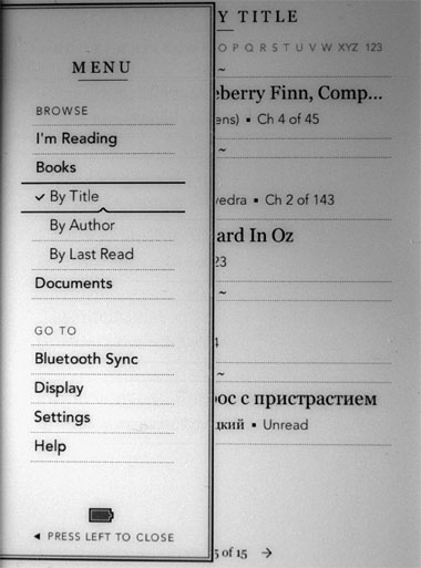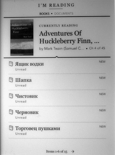 Как видите, вариантов не особенно много: вывести книги, которые вы читаете (имеется в виду те, которые были открыты и не дочитаны до конца), вывести список книг, вывести документы (под ними понимаются файлы формата PDF).