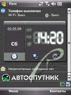 При запуске устройства появляется более или менее стандартный экран "Сегодня" от Windows Mobile, снабженный специальной утилитой от Rover под названием SmartToday. Также там присутствует элемент для запуска входящей в комплект навигационной программы "Автоспутник"