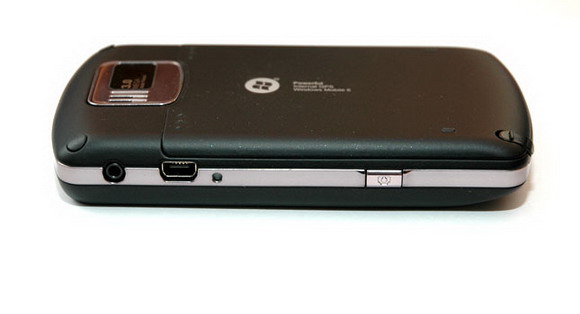 И надо сказать, что если расположение здесь выхода на наушники и Reset особых вопросов не вызывает, то порт miniUSB в правом торце, который практически у всех аналогов расположен все-таки в нижнем торце, - это не самое удачное решение. Потому что, когда этот порт в нижнем торце, при подключении кабеля коммуникатором спокойно можно пользоваться. А когда в правом - кабель очень сильно мешает. Так что зачем было так извращаться - непонятно. Пользователи разработчикам за это еще скажут немало горьких слов.