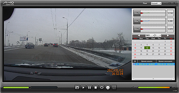 Однако у данной программы есть одна особенность, которую вы не найдете ни в одном другом плеере. Дело в том, что видеорегистратор Mio MiVue 238 снабжен трехосным датчиком удара G-shock. Этот датчик фиксирует все воздействия по трем осям координат и записывает их в реальном времени вместе с роликом.