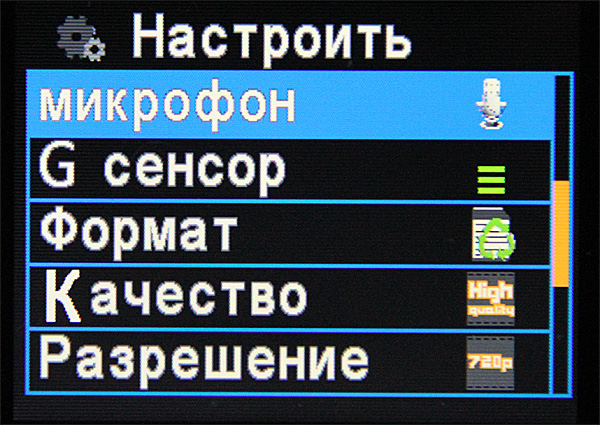 Микрофон - включение-выключение записи звука. Если выключить, то размер файлов будет ненамного меньше, однако обычно звук довольно важен для фиксации того, что происходит на дороге.