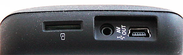 На левом торце - слот для карты microSD, выход аудио-видео для вывода на экран навигатора или телевизор (кабель придется покупать отдельно) и вход miniUSB для адаптера питания.