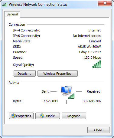 WiFi тут поддерживает протокол 802.11n. Однако вопреки ожиданиям с настройками адаптера тут все достаточно печально - практически никаких настроек нет. Поэтому как цепанулся - так и цепанулся. Они даже не пишут в статусе название протокола. Но на 802.11n все-таки цепляется, судя по скорости перекачки, которая получается где-то 5-6 мегабайт в секунду.