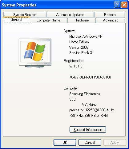 • Операционная система - Windows XP Home Edition Service Pack 3