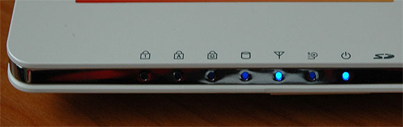 Индикаторов - аж семь штук, и они вынесены в левый угол передней панели.