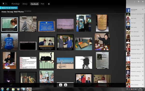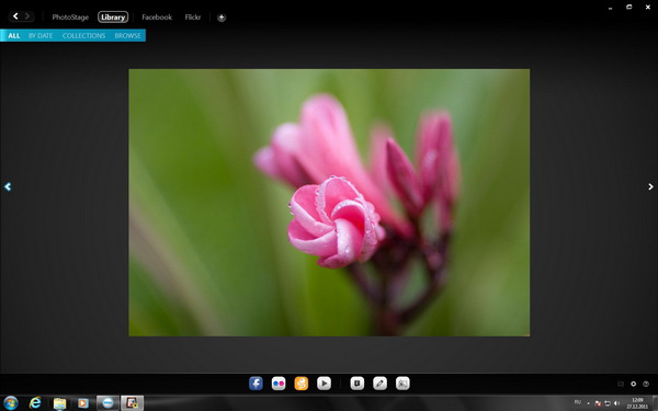 При выводе изображения на полный экран появляются пиктограммы публикации картинки в Интернете в различных социальных сетях.
