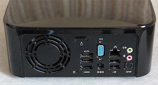 Ну что, комплектация железа вроде приличная. Средней производительности процессор и графика, достаточно памяти, полноценный терабайтный жесткий диск 3,5" (в HTPC часто ставят двухдюймовые диски) с 7200 оборотов, гигабитная сеть, Wi-Fi c протоколом 802.11n, ну и отличный набор выходов, включая даже два внешних SATA, что позволяет данный неттоп использовать в качестве домашнего файлсервера, если подключить туда один-два емких внешних диска.