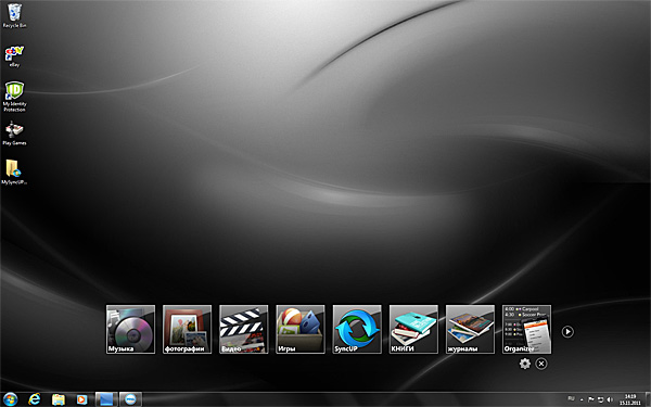 Подключил, запустил. Десктоп выглядит следующим образом - там к стандартным приложениям Windows 7 добавлена утилита "Сцена Dell".