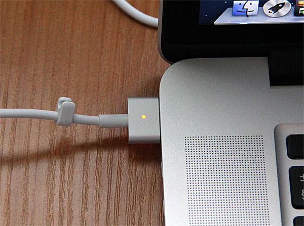 Ну и еще на магнитном сетевом адаптере загорается зеленый светодиодик при подключении ноутбука к питанию. И тут даже раскошелились на два состояния: светодиод горит желтым в момент зарядки ноутбука и зеленым - когда ноутбук полностью заряжен.