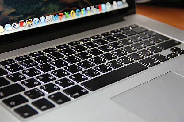 Вообще, конечно, хотелось бы как-то более рационально использовать такое пространство - уменьшить тачпэд и сделать побольше клавиатуру. Но в Apple принципиально дизайнят MacBook Pro именно так - здоровый тачпэд (чтобы удобнее было отрабатывать всевозможный мультитач) и обычная клавиатура.