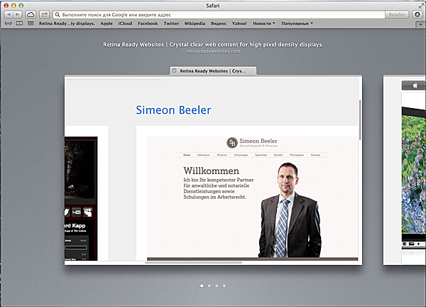 Об особенностях системы OS X и ее прикладных программах я очень подробно писал в обзоре iMac 27", поэтому здесь не будем повторяться. Вместо этого поговорим о некоторых особенностях новой OS X 10.8 (Mountain Lion) и об особенностях работы системы под дисплеем Retina.