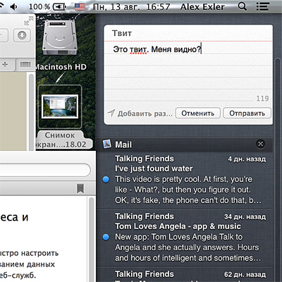 Система обмена мгновенными сообщениями - чтобы можно было болтать с пользователями iPhone, iPad, ну и других Маков. Поддерживает Jabber и протокол iMessage.